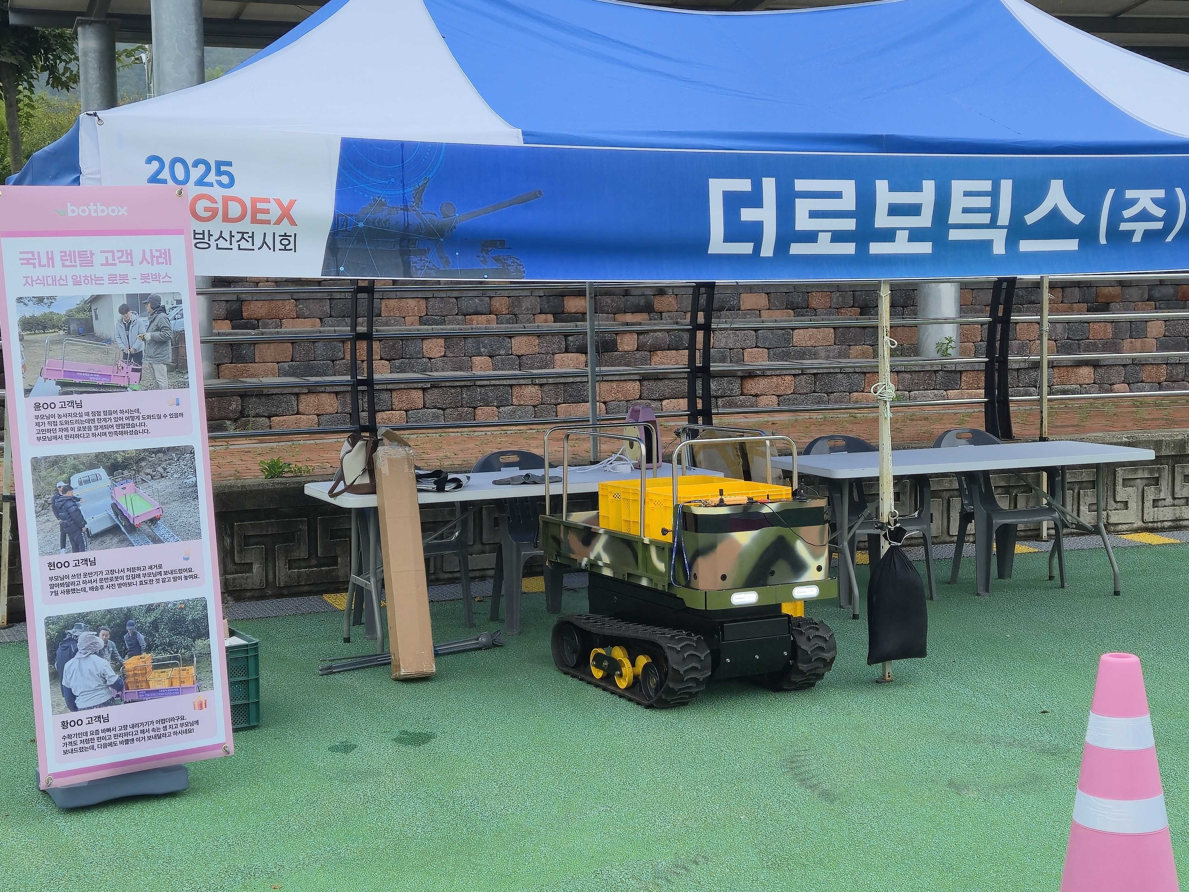 이번 전시회에서는 방산 분야에 맞춰 특별히 변신한 봇박스를 선보였으며, 직접 추종 기능을 체험할 수 있는 체험존도 운영했습니다.
